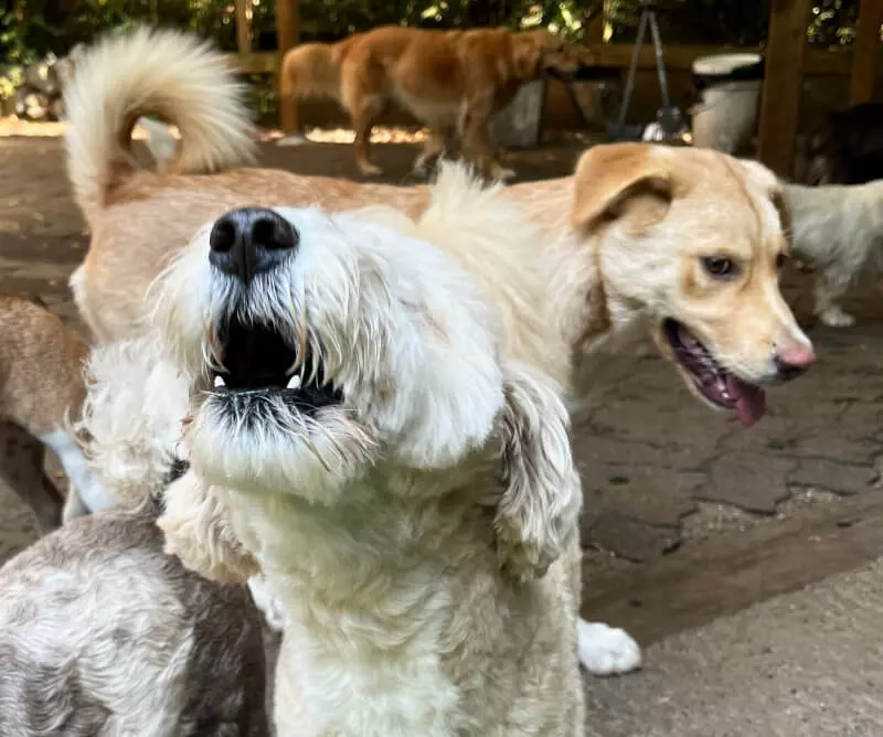Barking is another way dogs express their feelings or needs. For example, a dog might bark when they want some space from another dog or person.